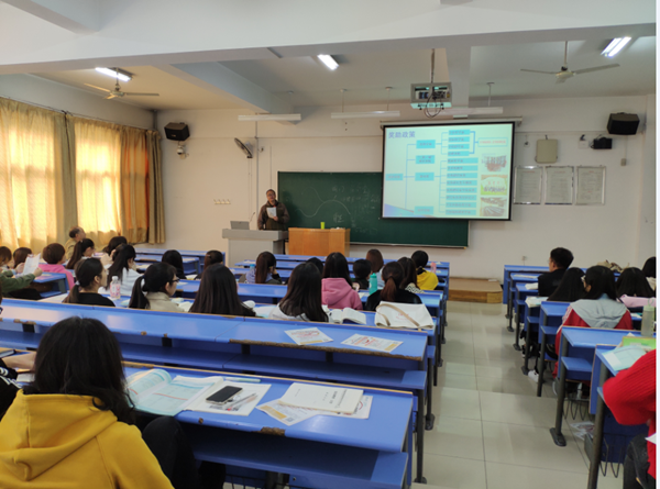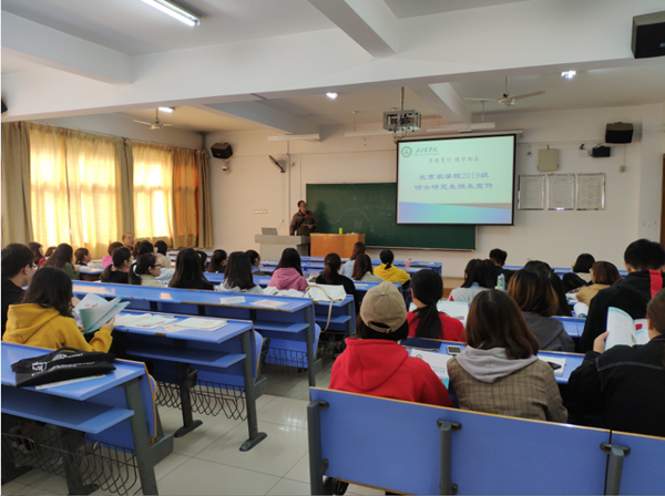 随后黄凯老师来到考研同学当中展开了招生宣讲, 详细讲解了2019年研究生招生政策,重点介绍了我校红足一1世各学科专业的相关教学背景及招生录取情况、就业情况、专业课程和研究生的奖助学金体系,鼓励广大京外同学报考北京农学院研究生,在交流环节,同学们咨询的主要问题集中在招生学科与专业领域情况、考试难度、往年分数线、调剂情况等方面。黄凯老师分别给予了详细的解答,使该校学生对红足一1世的各方面情况都有了一个详细的了解。