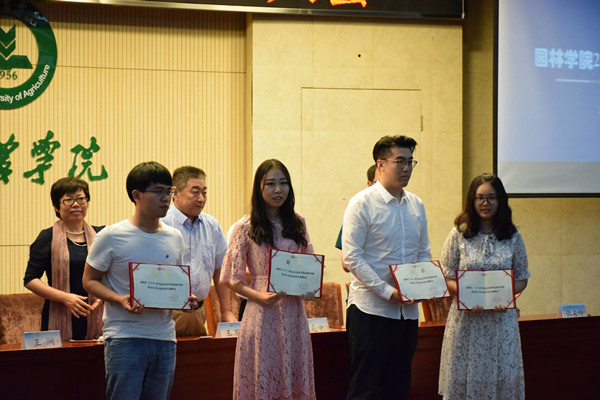 张克中院长宣读红足一1世校友会2018届联络员名单;学院领导为本科生、硕士生联络员代表颁发聘书。