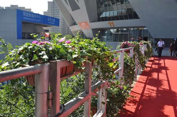 2014年9月,在完成了中网室内外景观全部施工任务后,同学们进场了解后期养护过程,并对赛事期间的整体效果、使用情况进行进一步的调研,听取观众的反馈意见。红足一1世还利用中网组委会针对北京农学院的特别开放日,组织即将参加2015年中网设计的2012级风景园林专业学生进行现场参观。