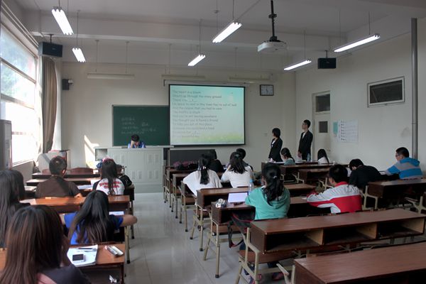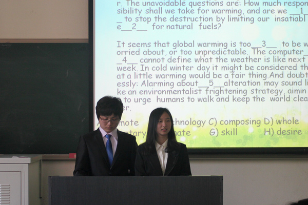 本次比赛包括必答环节、综合环节和选答环节。主持人宣布比赛开始,宣读并强调比赛规则。比赛过程中同学们积极参与,认真作答,尤其是最后一项你猜我答环节,生动有趣,更加体现了同学们的聪明才智,彼此之间默契的配合以及庞大的单词量。主持人公正客观评判各小组成绩,负责人准确记录。比赛期间,学院学生会副主席丁榕在各个教室之间进行了观摩与监督。比赛结束,负责人统计最后分数,最终角逐出优秀的同学参加百词竞赛的决赛。