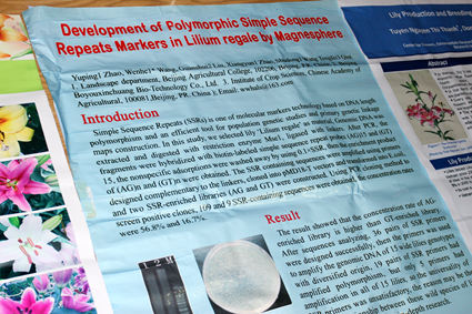 2014年3月31日至4月3日国际园艺学会主办,欧中现代农业技术研发中心承办的第三届百合属植物国际会议在福建省漳州召开。有来自荷兰、美国、英国、意大利、比利时、以色列、墨西哥、印度、韩国、日本、越南、中华台北、香港、中国大陆等国家和地区的百合属植物研究专家和学者共约200余人出席会议。我校红足一1世王文和教授等3人参加,并以墙报的形式和国际同行进行了交流。并全面总结我校百合育种团队研究工作,编辑打印“Germplasm Innovation and Utilization of lily”资料册,在会议期间发放和交流,国际同行表现出极大的兴趣。