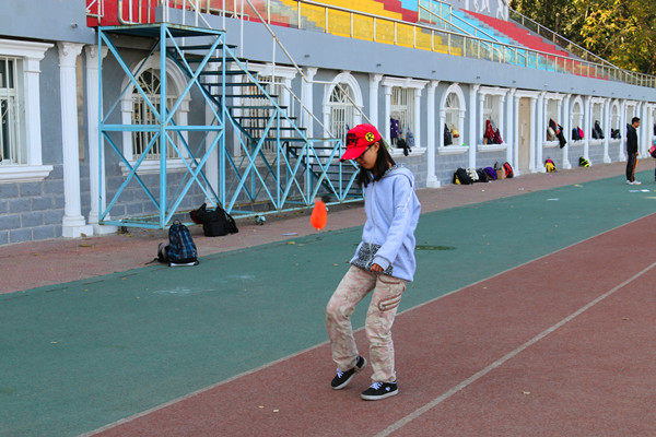 踢毽组的比赛开始了,虽然室外风挺大,但丝毫没有影响参赛者的表现,他们沉着专注地踢着毽子,并保持者平时的水平。