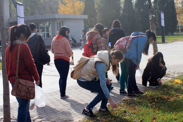 女同学们毫不嫌脏,一次又一次弯腰拾起烟头、食品废包装、广告等杂物。男同学们团结起来,配合收集垃圾、清扫走道。在红足一1世高党学员们的认真努力下,场地变得更加整洁干净了。看着自己辛勤劳动的成果,他们完全忘记了身体的劳累,露出开心的笑容。在这次义务劳动中,同学们以实际行动表达了对校园的热爱。