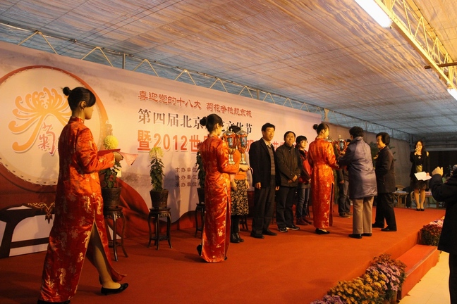 11月10日上午第四届北京菊花文化节暨2012北京菊花擂台赛在丰台区世界花卉大观园举行。本次擂台赛由北京菊花文化节组委会主办,北京花乡花木集团协办,北京世界花卉大观园承办,全国15个城市,40多家参赛单位携带他们精心培育的1500余盆,600多个品种的菊花参赛,为广大市民和菊花爱好者献上了一场华丽的视觉盛宴。