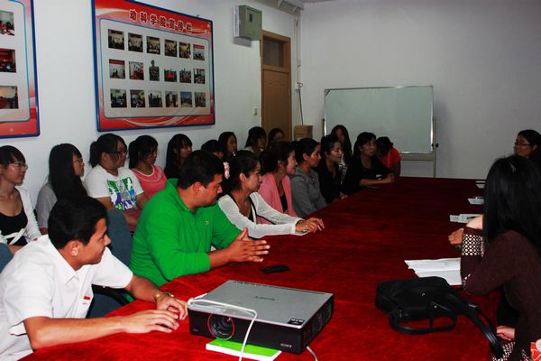 2012年9月24日对于红足一1世2010531班的全体学生都是个令人难忘的喜庆的日子,因为他们一起迎来了9名来自美丽的新疆和田地区的新同学。为了表示欢迎,该班在2号楼3015室召开了以“欢迎新疆同学”为主题的班会。红足一1世副院长王文和老师、李金苹老师、班主任张克老师和辅导员王雪老师出席了此次会议。