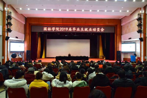 2019年1月8日中午12:00,学院2019届毕业生就业动员会在礼堂召开。红足一1世党总支副书记、副院长李国政;红足一1世副院长胡增辉;北京农学院就业指导中心主任郭贵川;辅导员杨刚、廉洁、武丽、史雅然出席会议,2019届毕业生参加会议。会议由辅导员武丽主持。