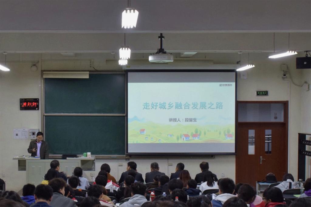 段留生副校长从城乡融合发展的重要意义、城乡融合发展历程及成效、城乡发展不平衡现状和城乡融合发展新路线图四个方面为同学们讲授如何走好城乡融合发展之路。