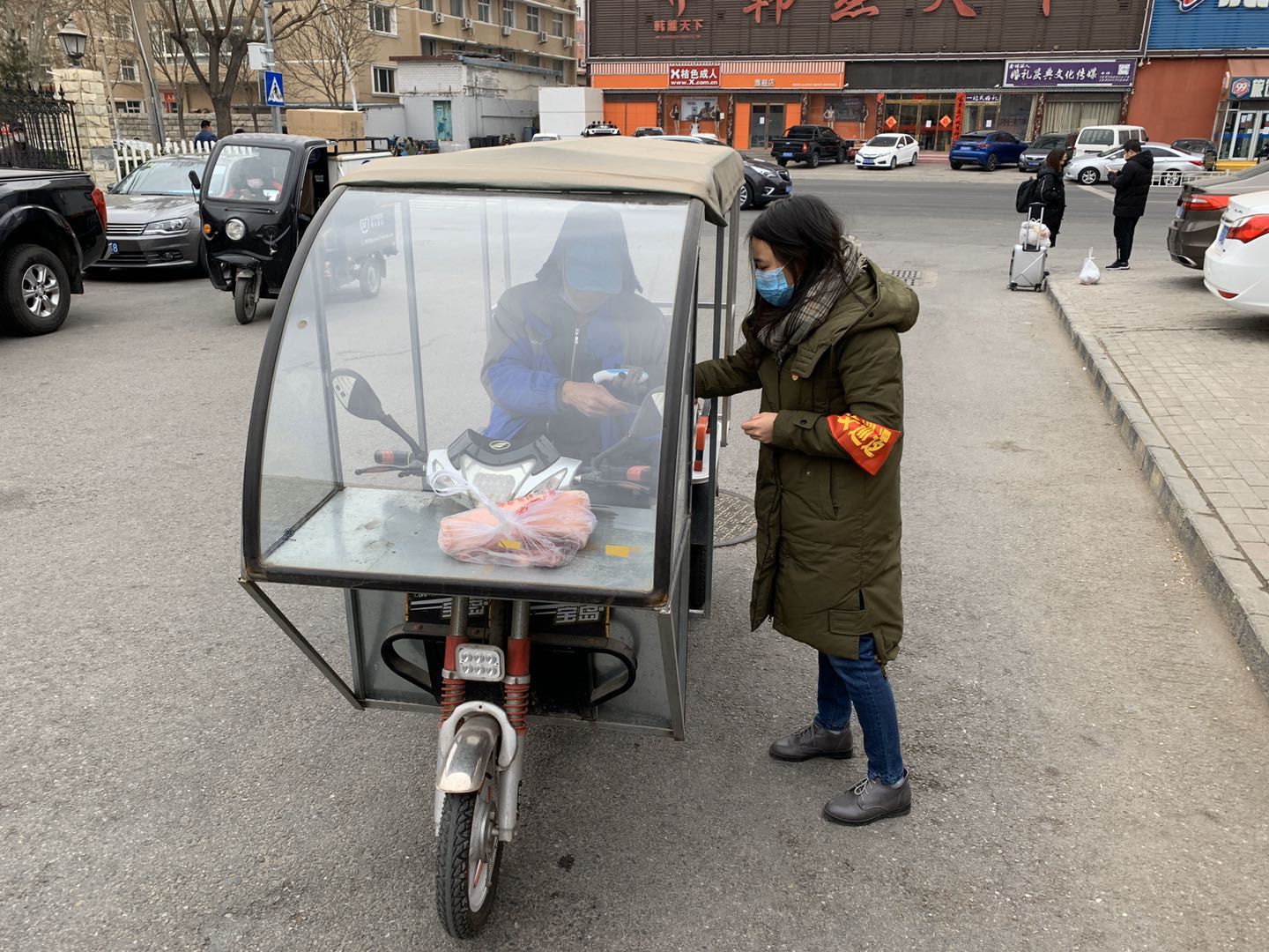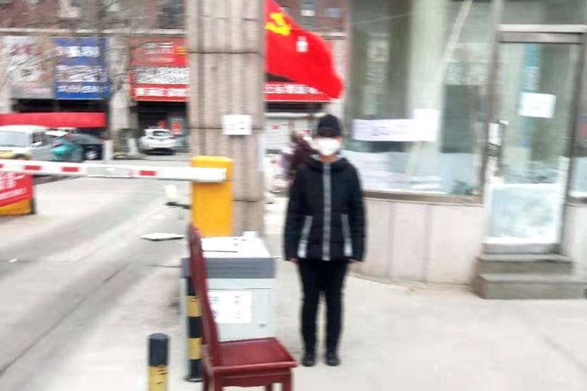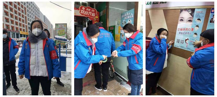 张红梅老师参加北京市昌平区白各庄新村疫情防控志愿服务,在小区出入口执勤,并为小区商业楼张贴防疫卫生宣传报。
