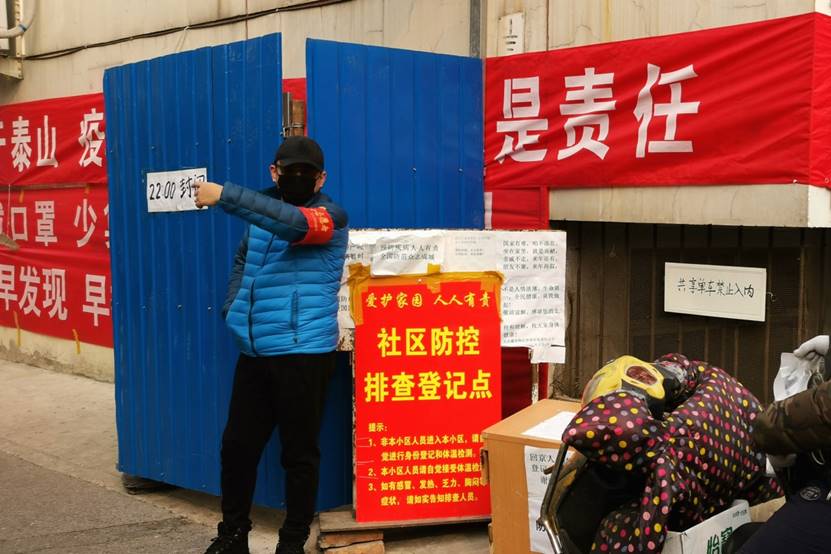 贾海洋老师参加北京市海淀区文慧园社区的检查、登记等疫情防控志愿服务工作。