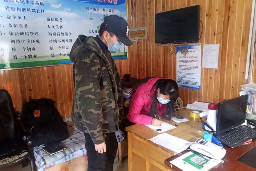 2017级园林2班本科生王坤参加河北省迁安市永顺街道办事处安顺社区疫情防控志愿服务,登记进出人员信息。