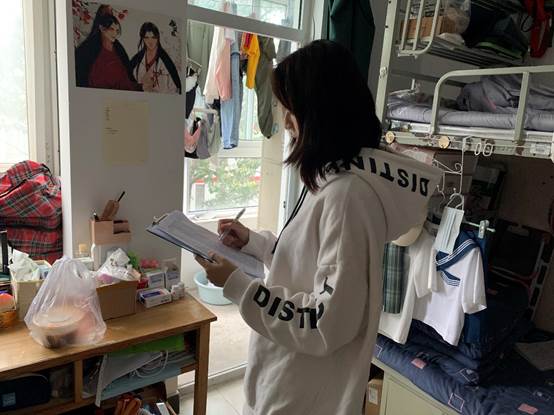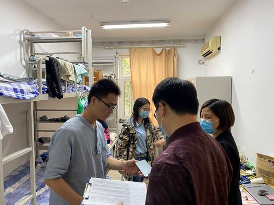 2020年9月23日下午红足一1世辅导员带领学生干部对学院学生宿舍开展全面检查,重点排查安全(吸烟)问题和卫生问题,并建立检查台账,落实整改责任人,督促学生限期整改。